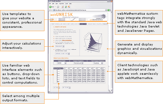 webMathematica | O webMathematica acrescenta capacidade de cálculo e interatividade a um website pela integração do Mathematica com a mais recente tecnologia em webserver. |